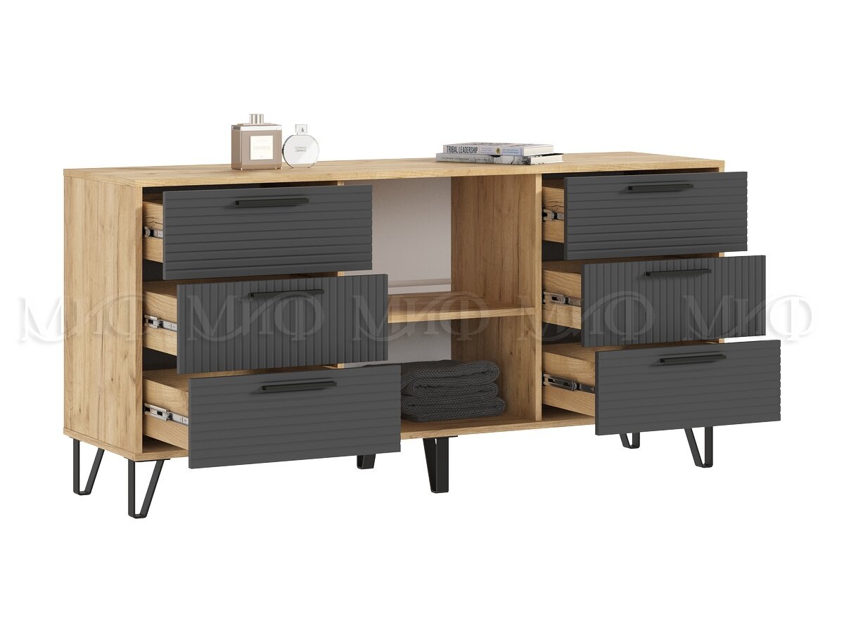 - Комод (1500) Флэш Браш Графит, Дуб Крафт
