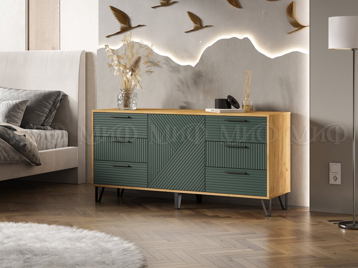 Комод (1500) Флэш Браш Мени Грин, Дуб Крафт