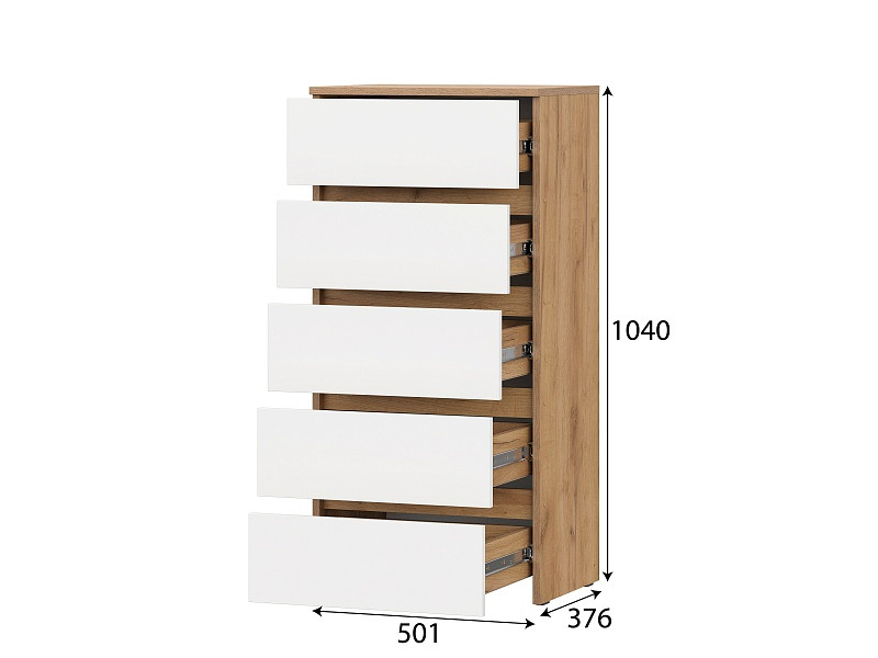 - Комод 5 ящиков Некст 1 Дуб Золотой/Белый