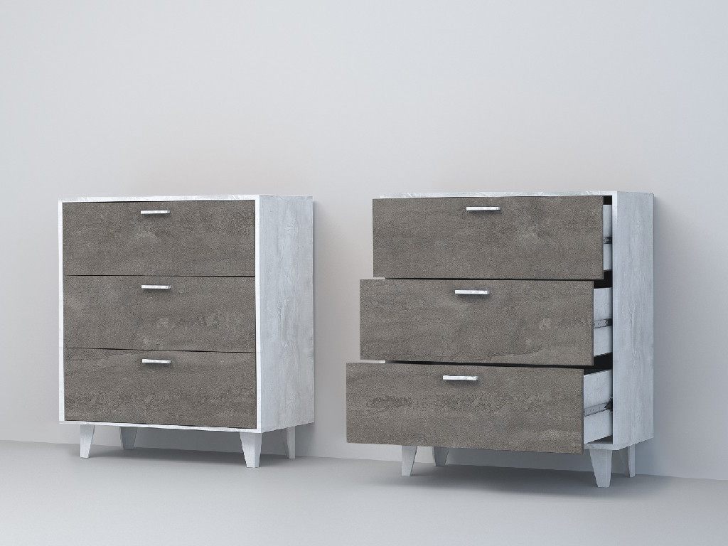 - Комод Эго К-3 3 ящика бетон светлый/камень темный на ножках
