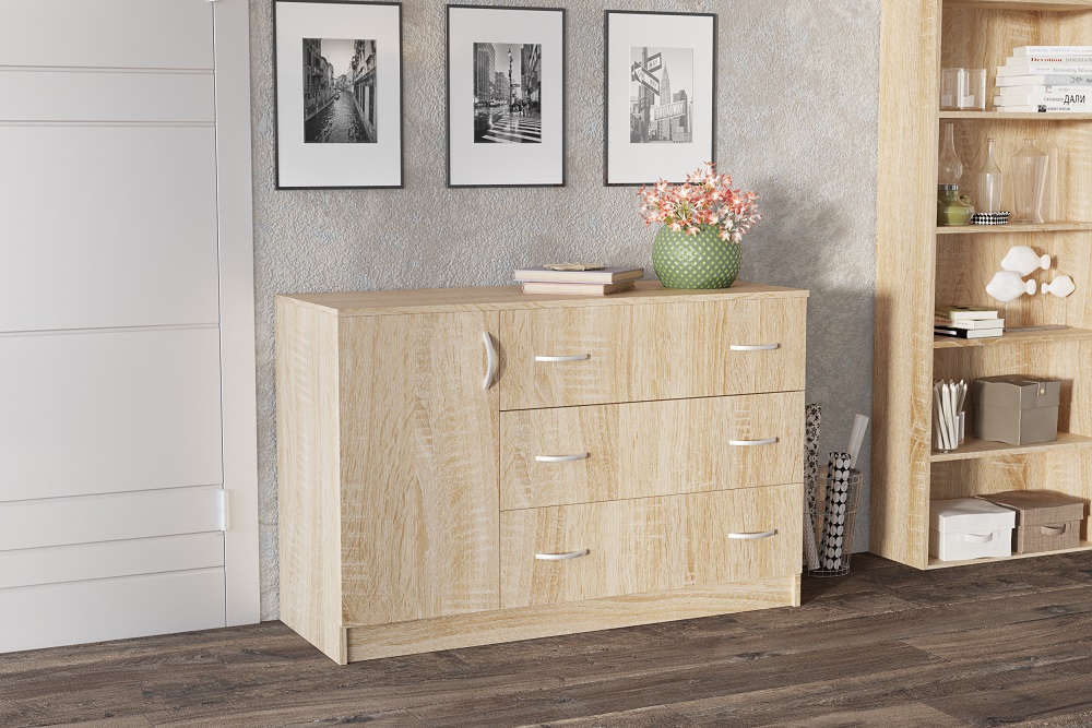 - Комод Лофт 3 ящика 1 дверца дуб сонома