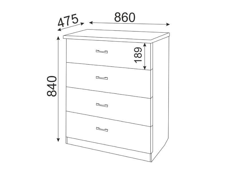 - Комод 4 ящика Осло М05 ручка брусок Белый