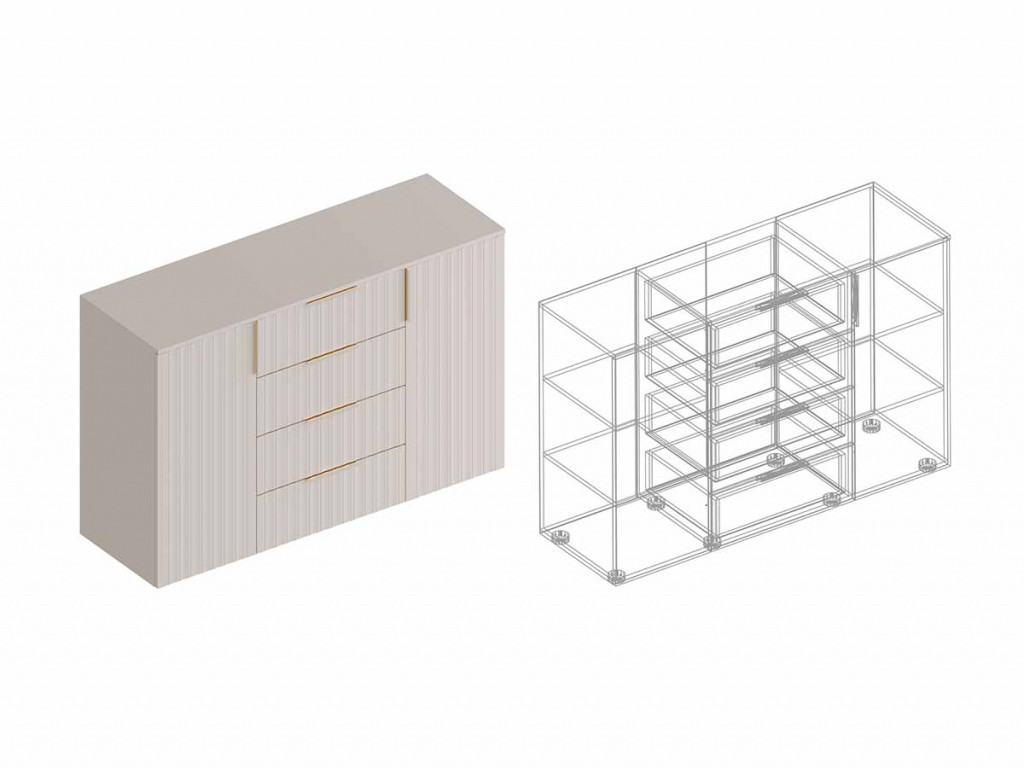 - Фасад: МДФ с фрезеровкой, плёнка ПВХ Софт Сантьяго, толщина 320-350 микрон МКМ (с праймером)