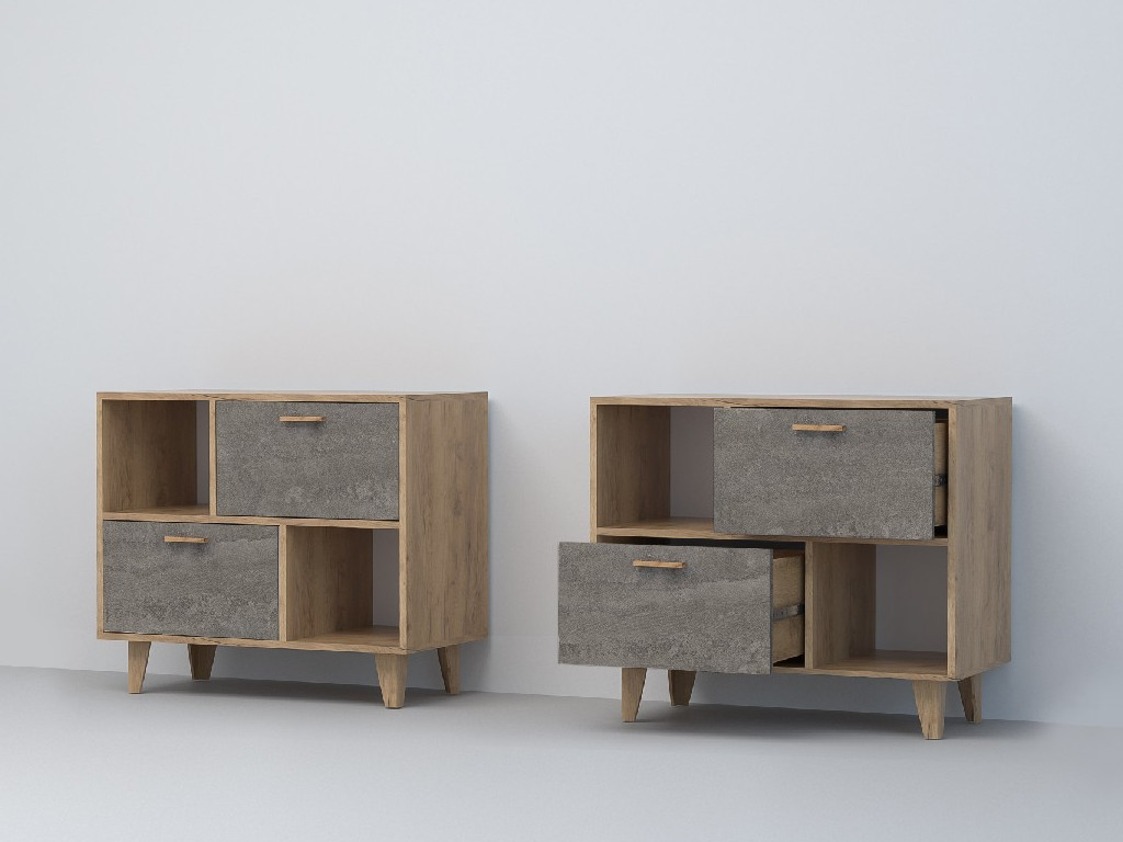 - Тумба Эго Т-1 2 ящика дуб крафт золотой/темный камень на ножках