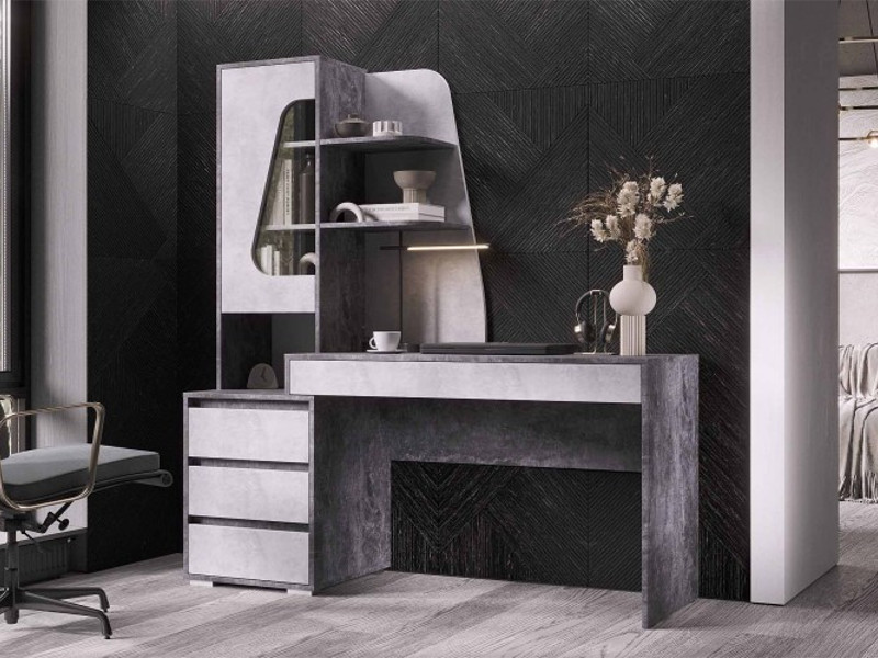 - Три ящика в тумбе + Один широкий ящик под столешницей.