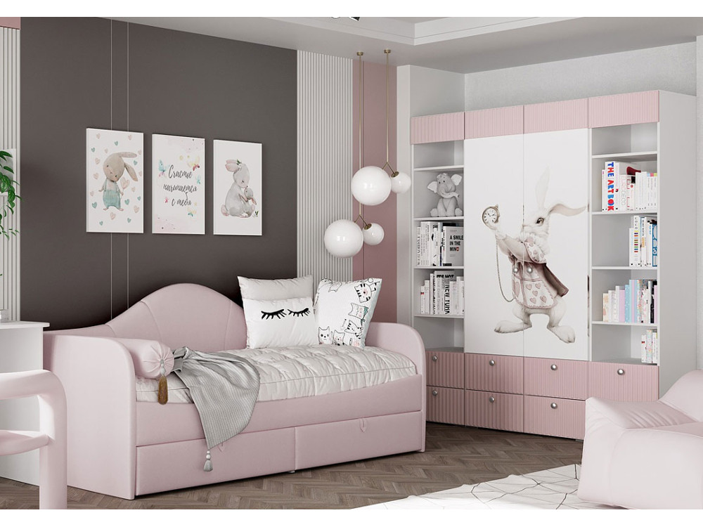 - Кровать с мягкой обивкой Алиса ПМ-332.18, велюр розовый