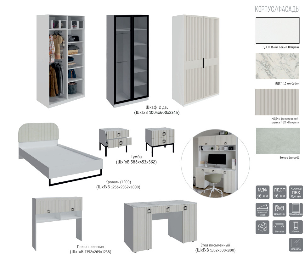 Цена за комплект: Кровать (1200) Тумба, Стол письменный, ЭМ.3.1.14 Полка навесная