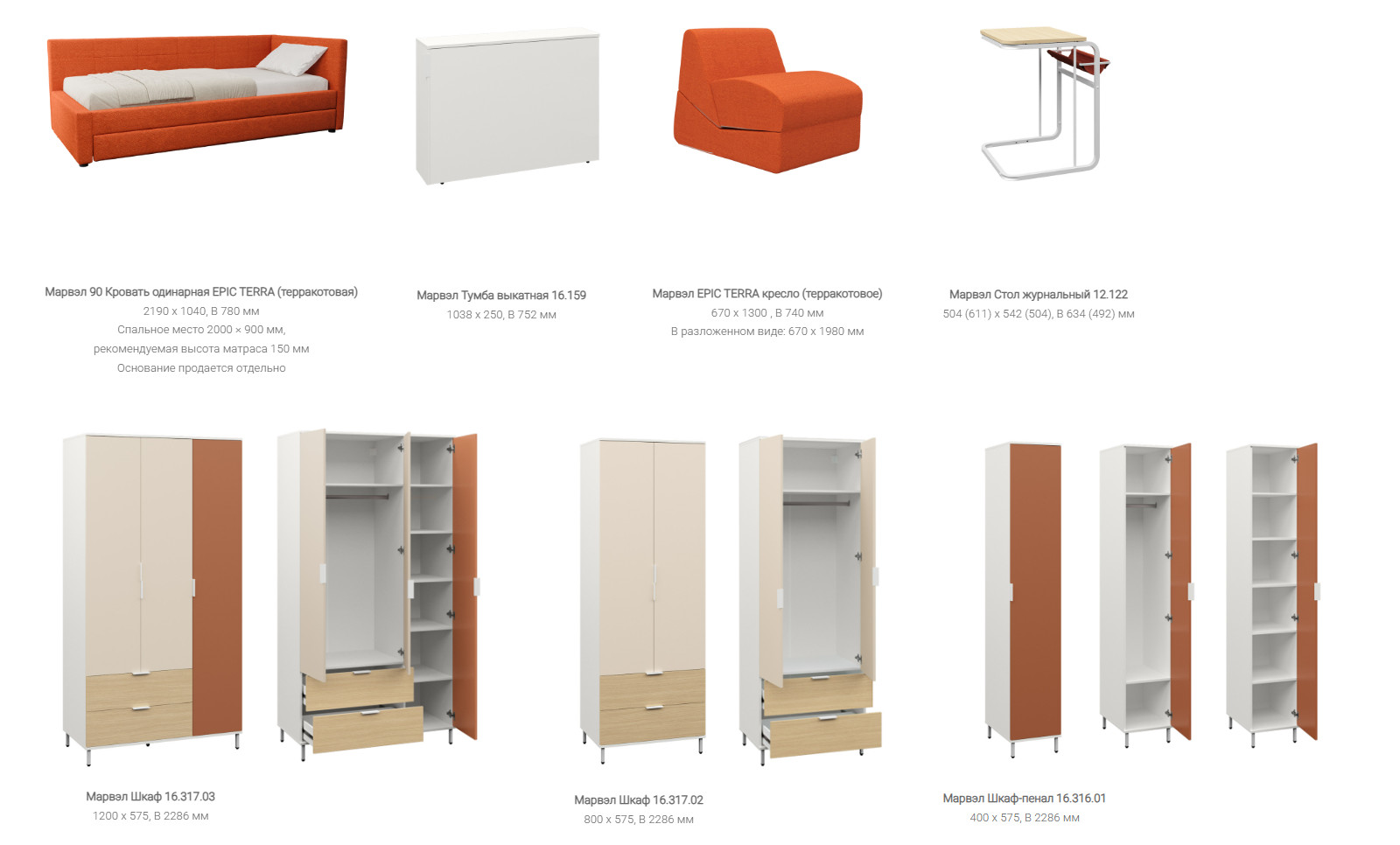 Цена указана за комплектацию: 90 Кровать одинарная, Тумба выкатная 16.159 , Шкаф 16.317.03