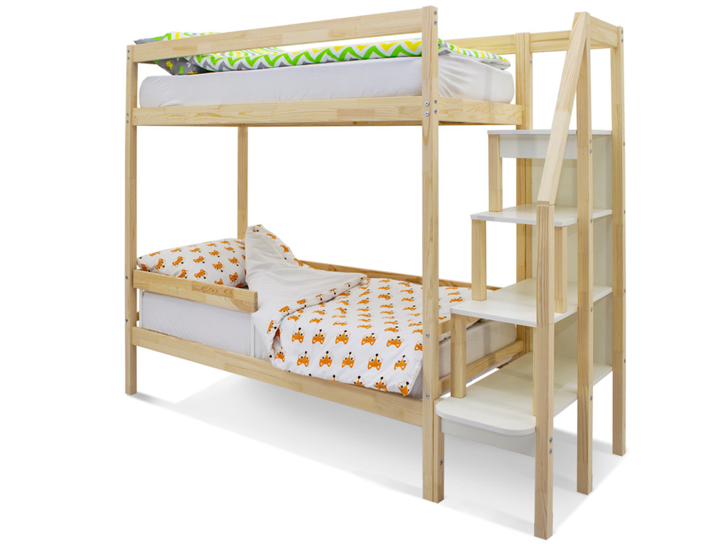 Двухъярусная кровать Svogen с бортиком натура без покрытия