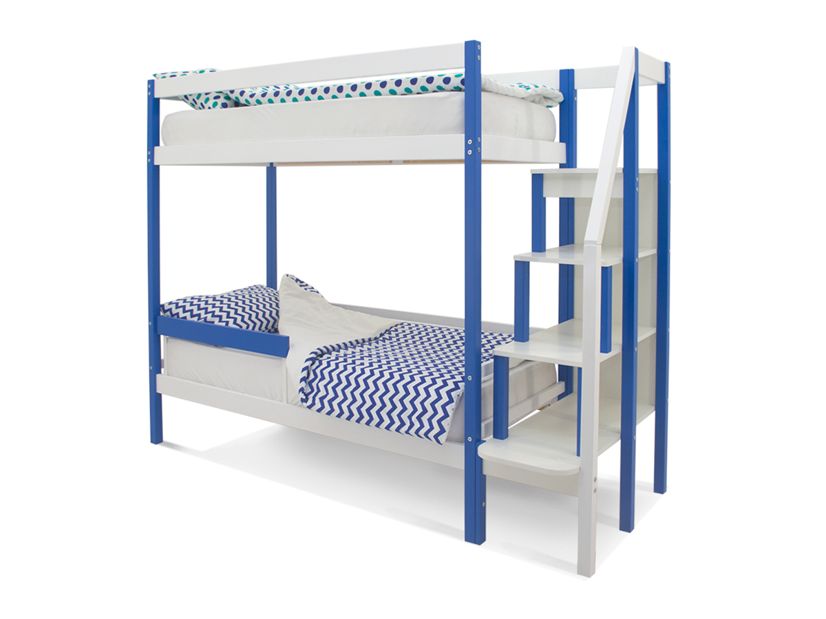 Двухъярусная кровать Svogen с бортиком синий-белый