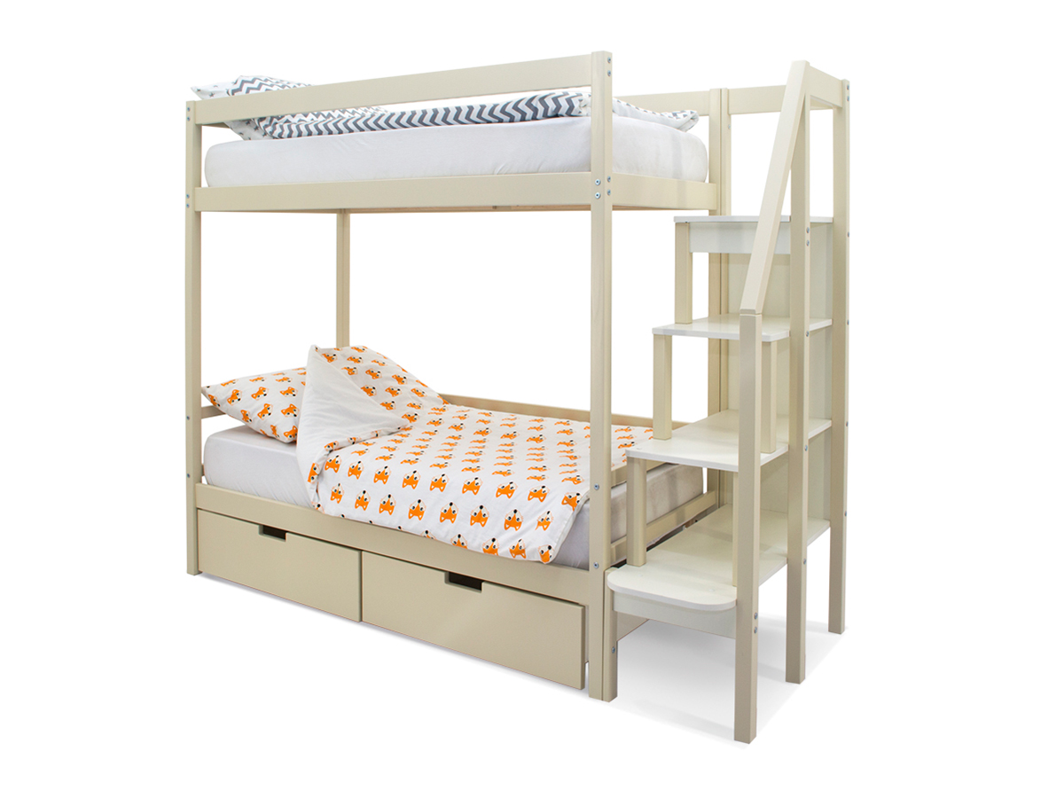 - Двухъярусная кровать Svogen с ящиками бежевый
