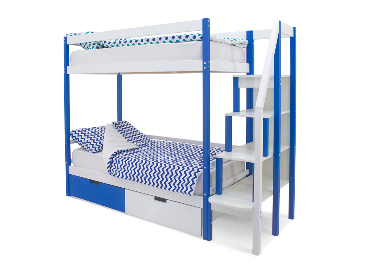 Двухъярусная кровать Svogen с ящиками сине-белый