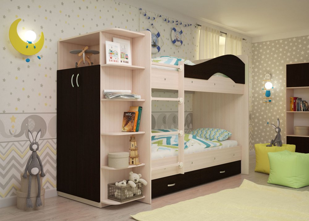 - Двухъярусная кровать со шкафом Мая латофлексы венге