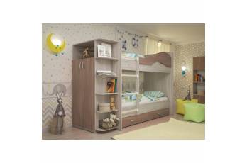 - Двухъярусная кровать со шкафом Мая щиты ясень