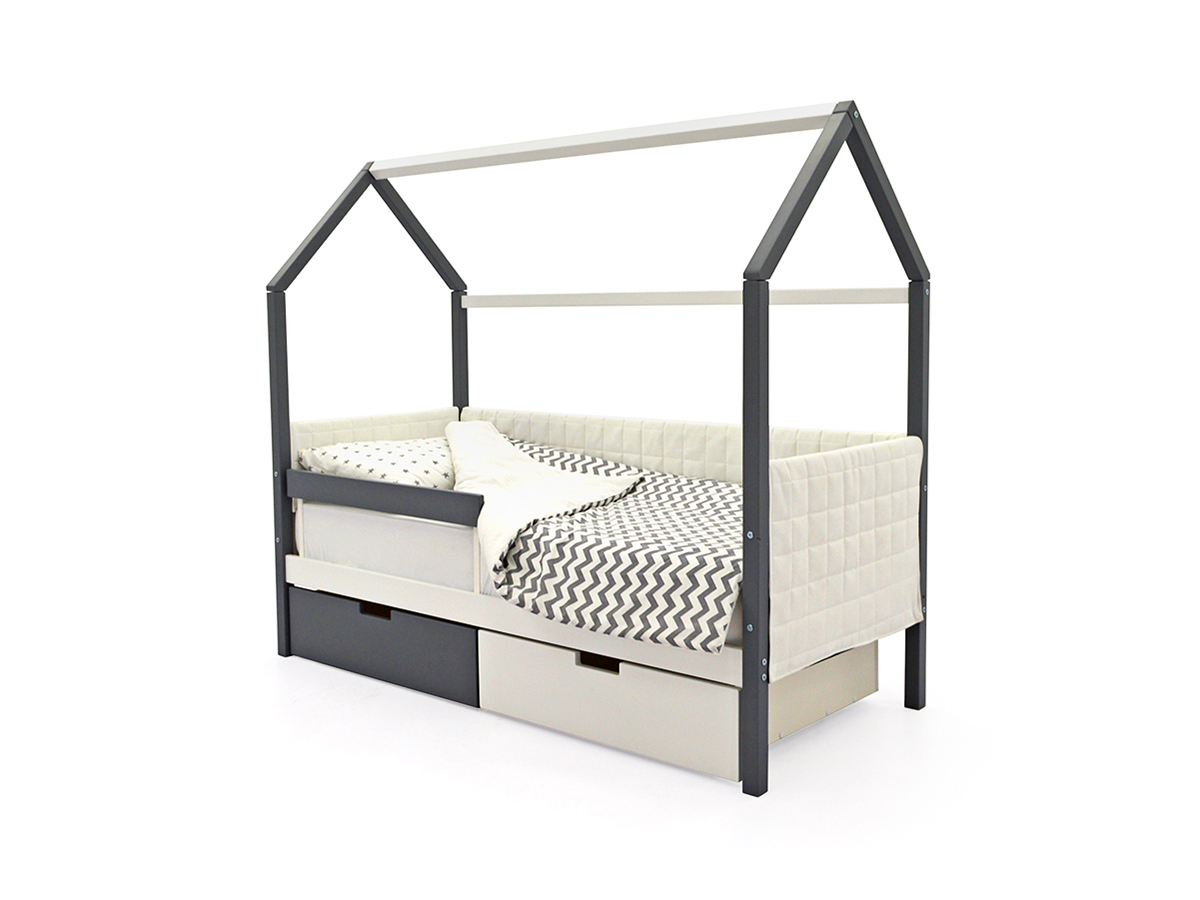 - Кровать-домик мягкий Svogen с ящиками и бортиком графит-белый