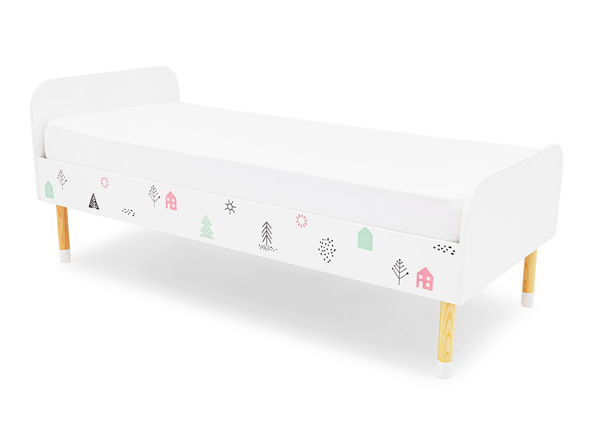 - Кровать Stumpa Классика с рисунком Домики розовый, бирюзовый