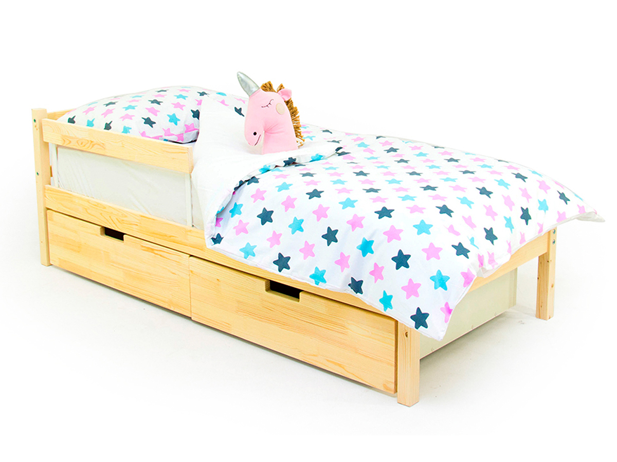 - Кровать Svogen classic с ящиками и бортиком натура без покрытия