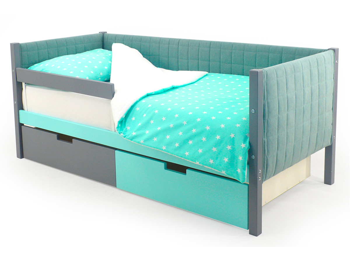 - Кровать-тахта мягкая Svogen с ящиками и бортиком графит-мятный