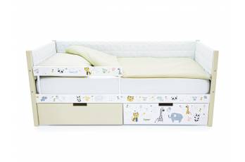 - Кровать-тахта Svogen мягкая с ящиками и бортиком с фото бежевый/зверята