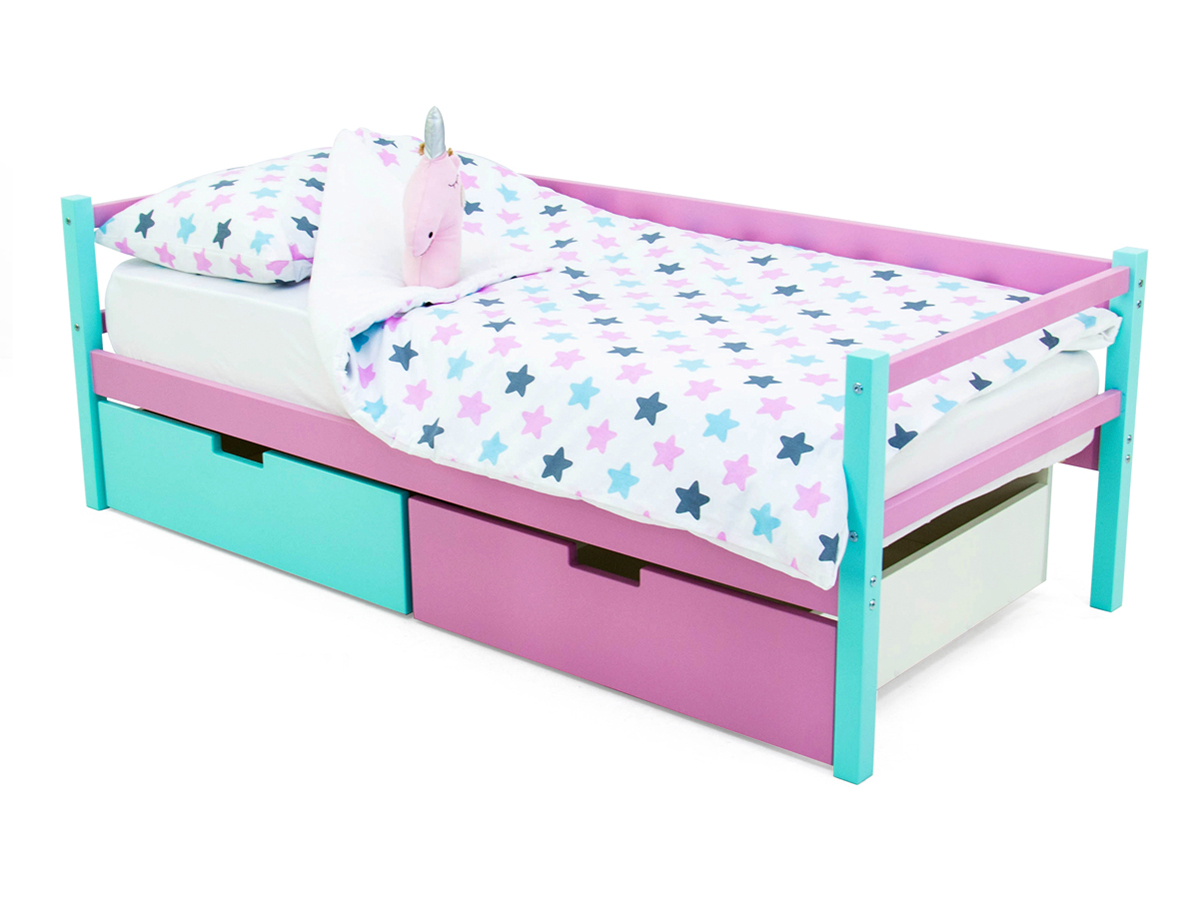Кровать-тахта Svogen с ящиками мятный-лаванда
