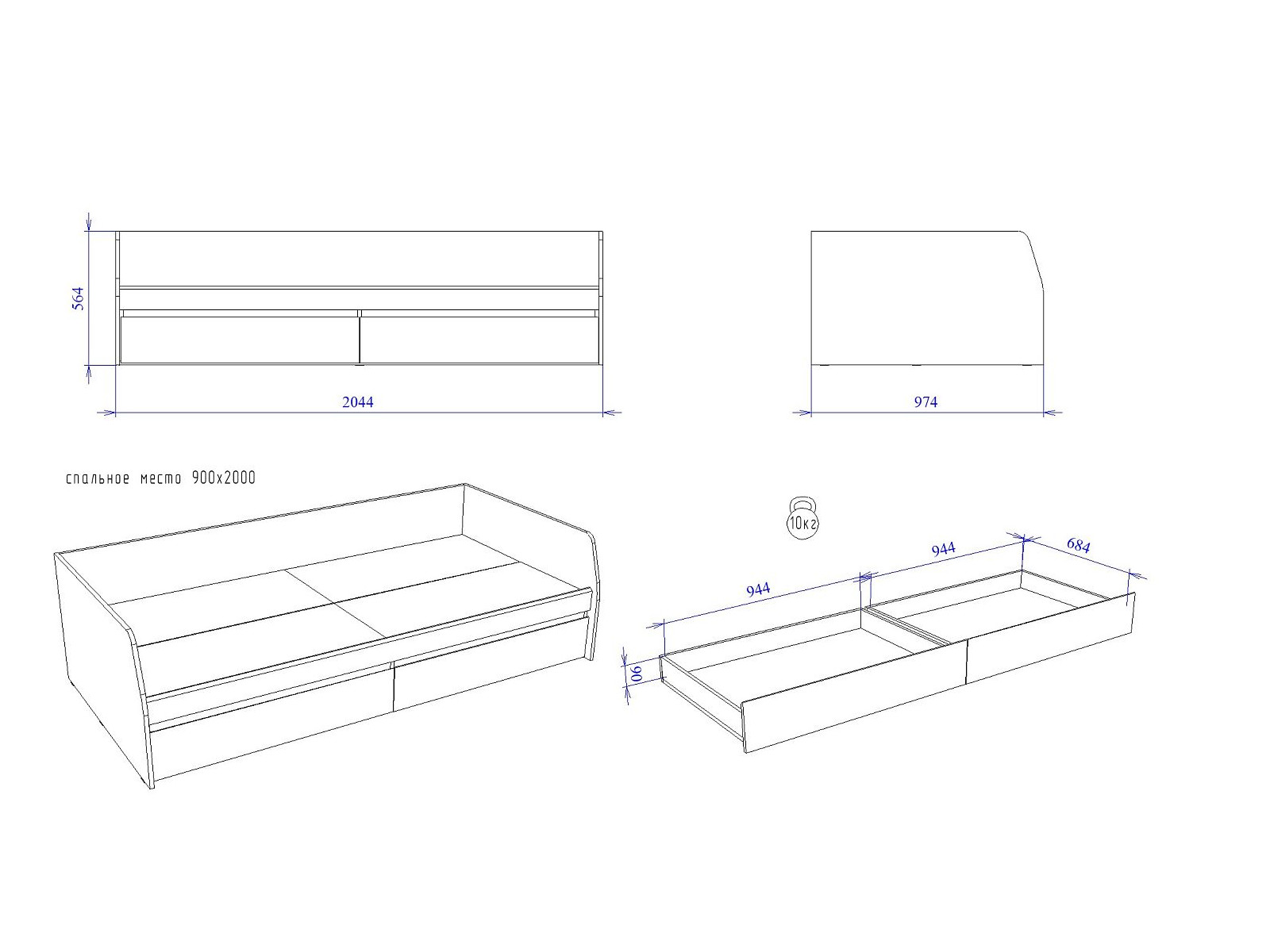 - 05.030 Кровать с ящиками (5уп) 2044*974*564 (арт. 40201 )