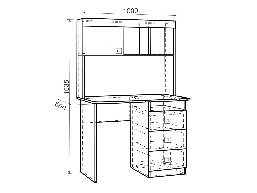 Размер: ш=1000 мм, г=600 мм, в=1535 мм