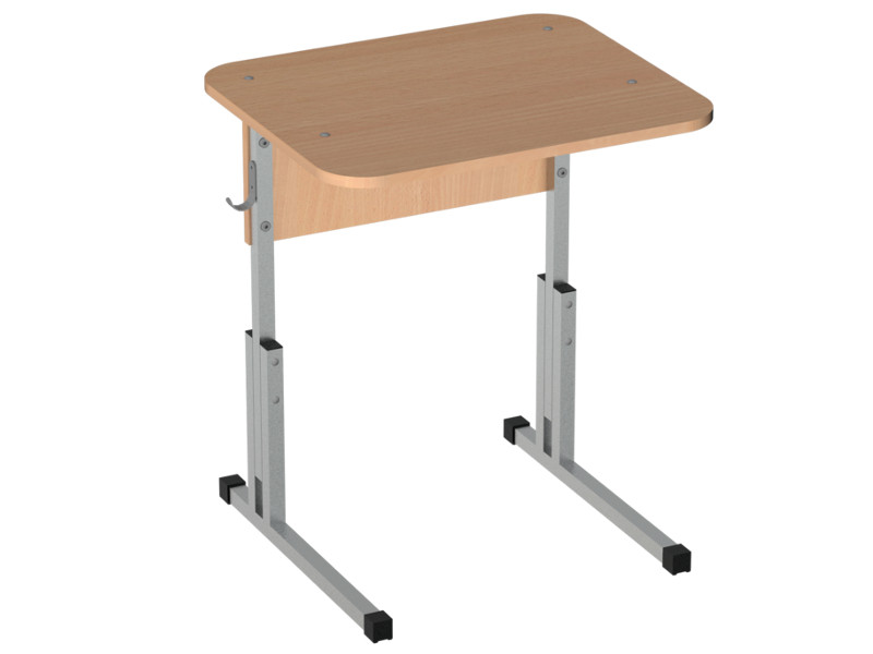 Одноместный ученический стол с закругленными углами, регулируемый по высоте.