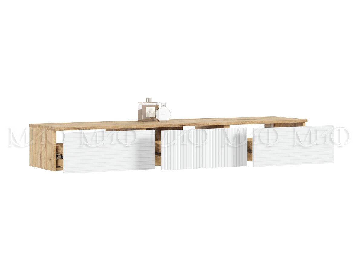 - Полка косметическая 1500 Флэш Браш Вайт, Дуб Крафт