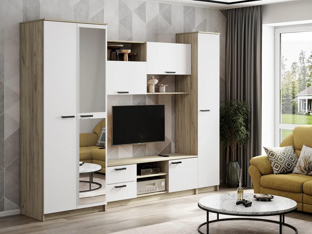 - Стенка Марта-12 Дуб Крафт серый/Белый