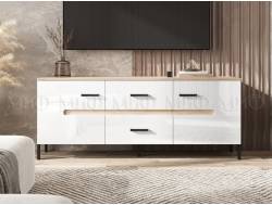ТВ тумба Эго Т-3 бетон светлый/белый глянец на цоколе