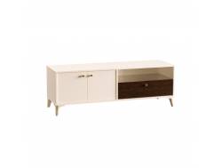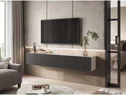 - ТВ тумба Эго Т-3 бетон светлый/белый глянец на цоколе