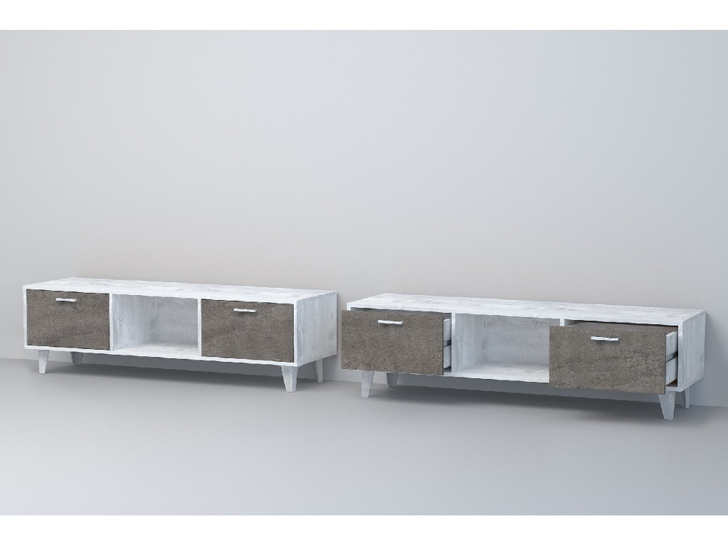 ТВ тумба Эго Т-3 бетон светлый/камень темный на ножках