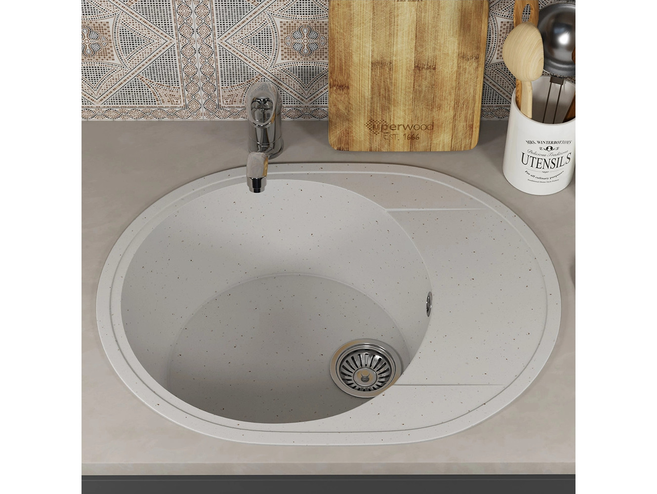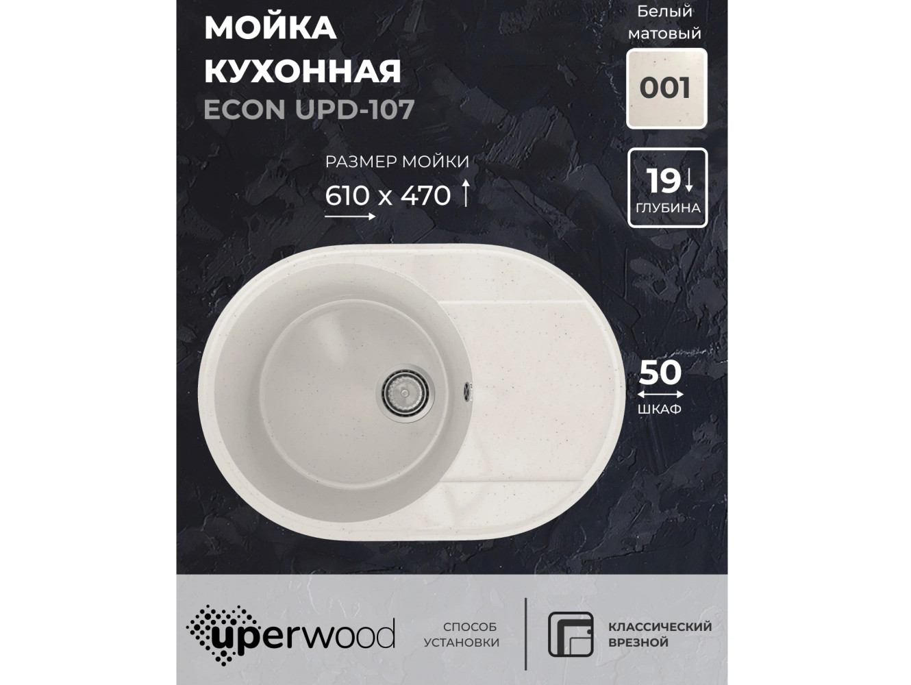 - Кухонная мойка Uperwood ECON UPD-107-001 белая матовая