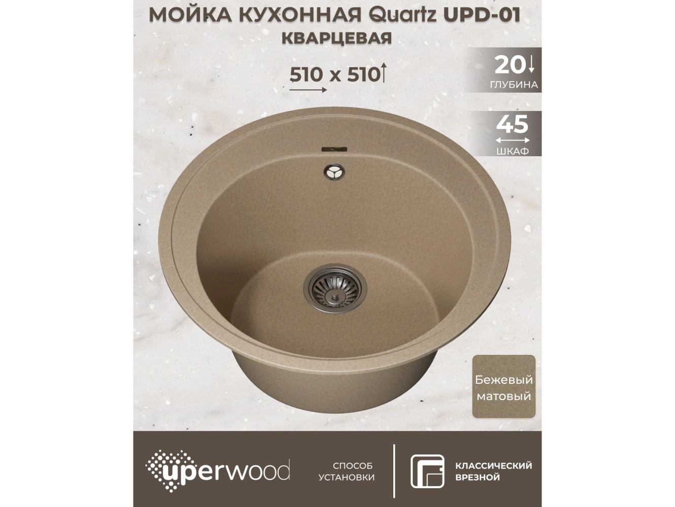 Кухонная мойка Uperwood Quartz UPD-01-02 бежевая матовая