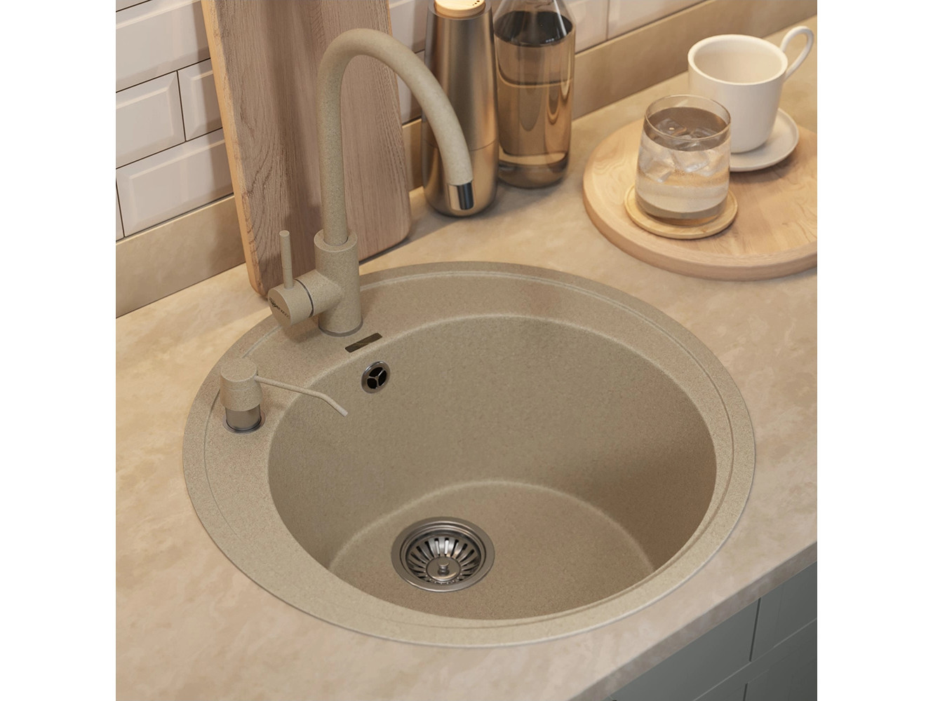 - Кухонная мойка Uperwood Quartz UPD-01-02 бежевая матовая