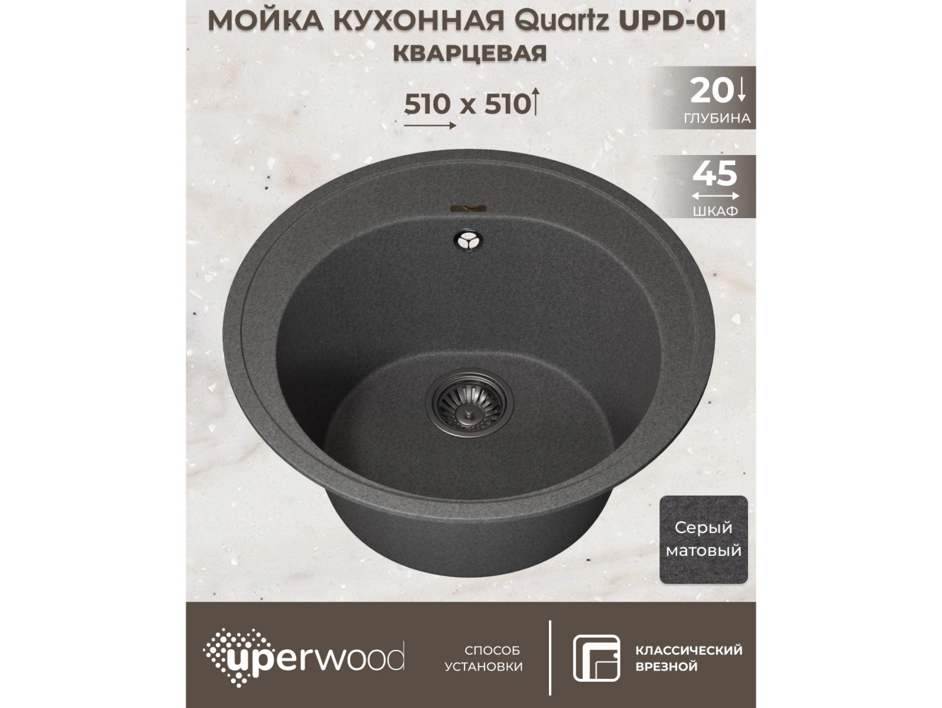 Кухонная мойка Uperwood Quartz UPD-01-03 серая матовая