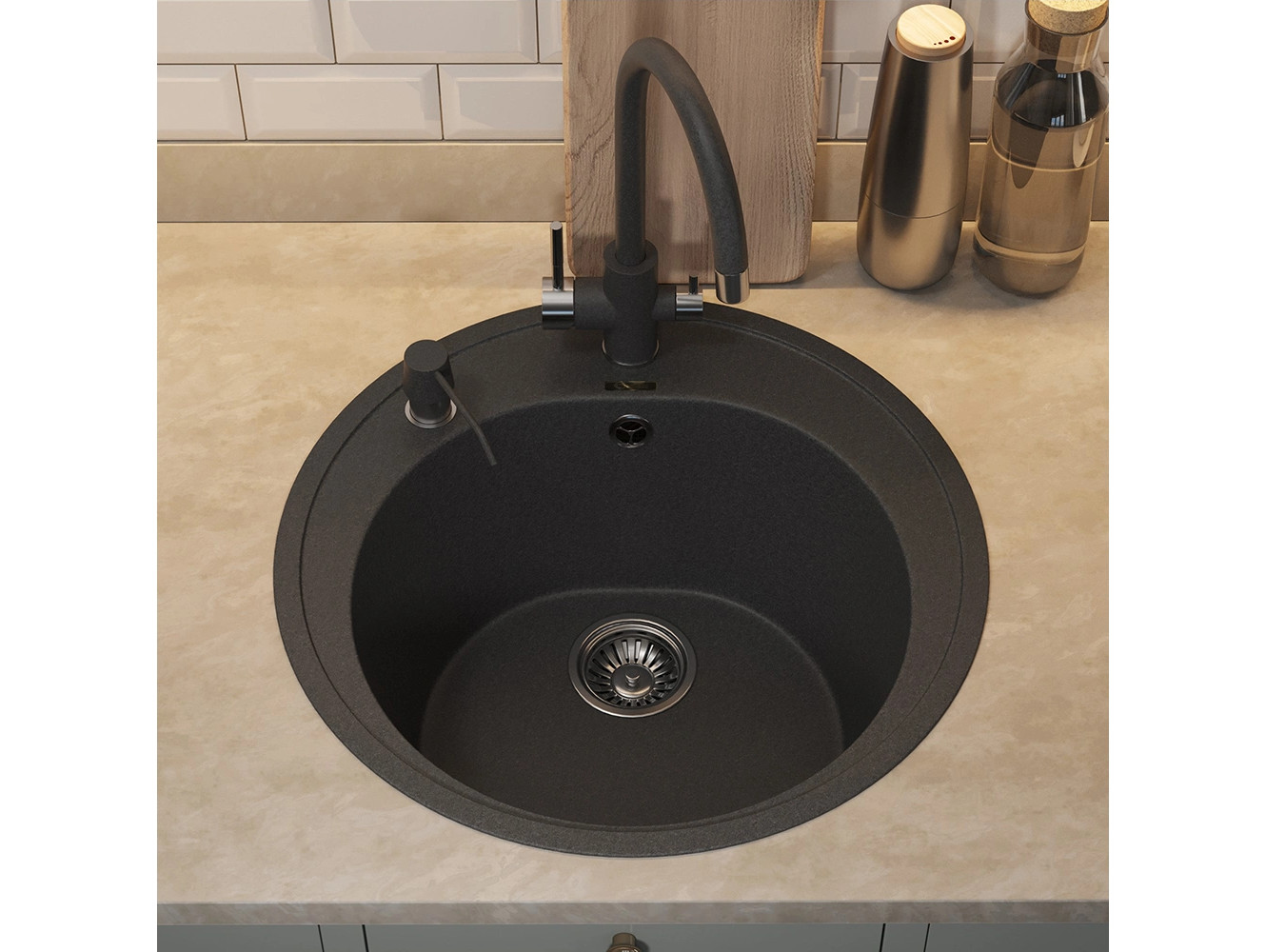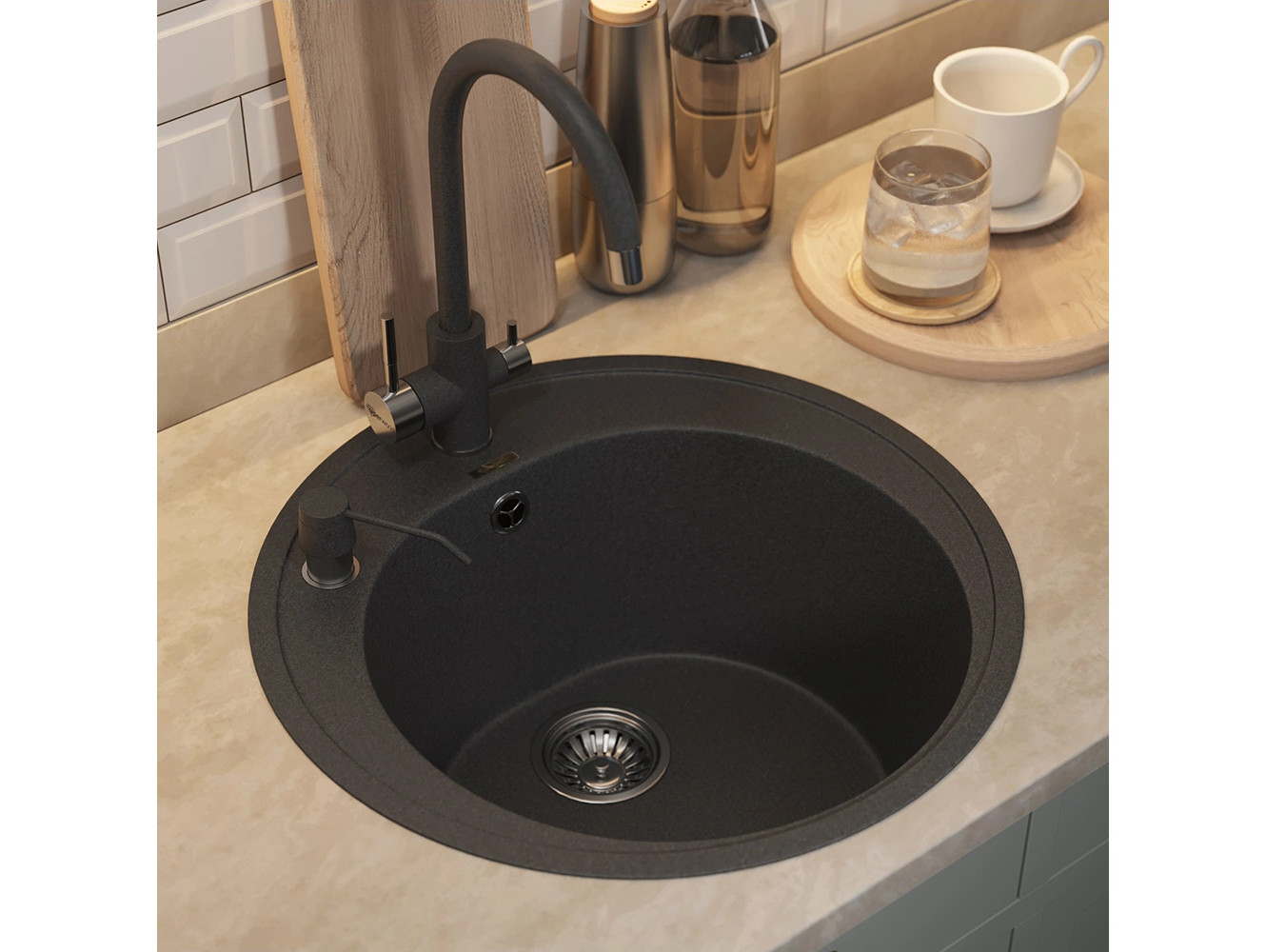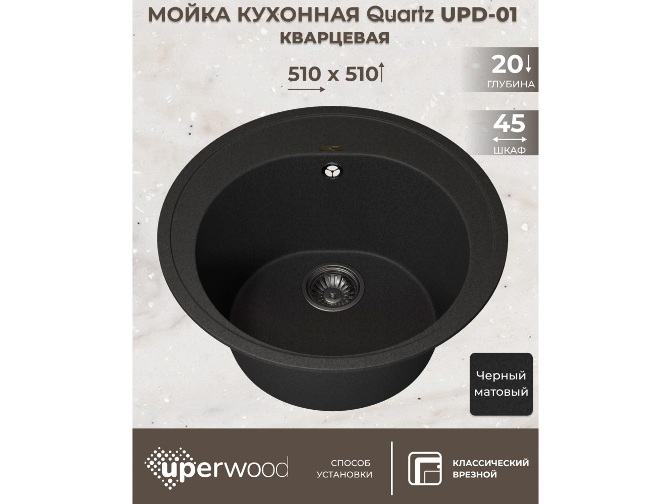 - Кухонная мойка Uperwood Quartz UPD-01-04 черная матовая