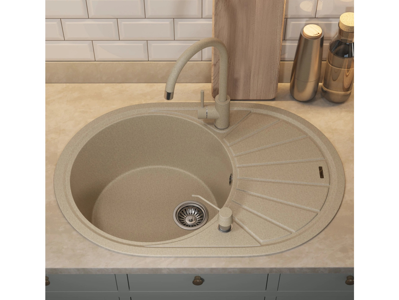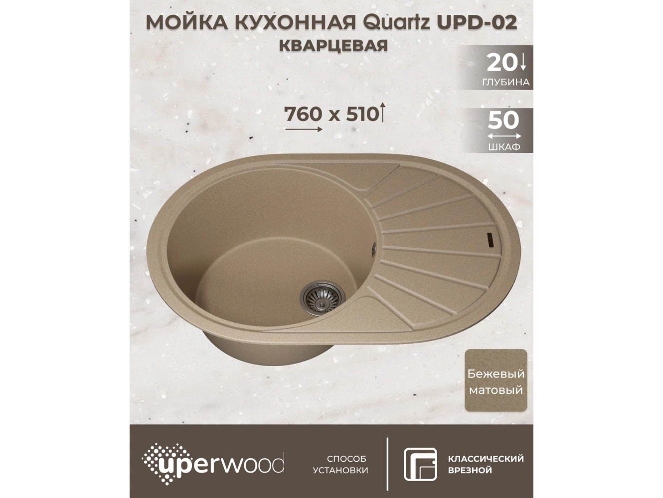 - Кухонная мойка Uperwood Quartz UPD-02-02 бежевая матовая