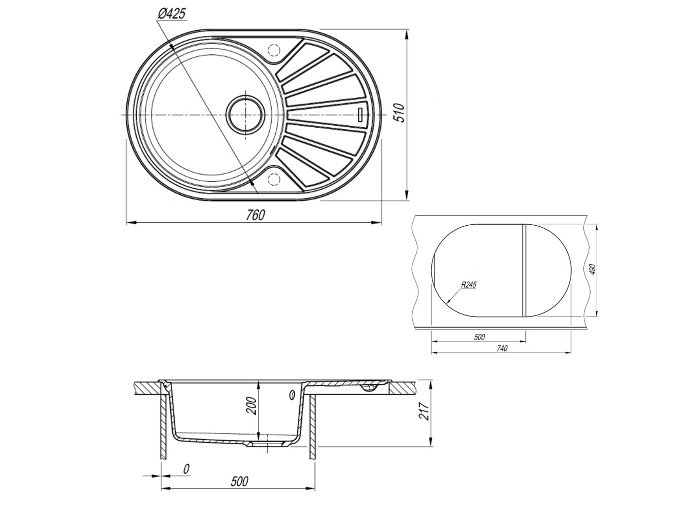 - Кухонная мойка Uperwood Quartz UPD-02-03 серая матовая