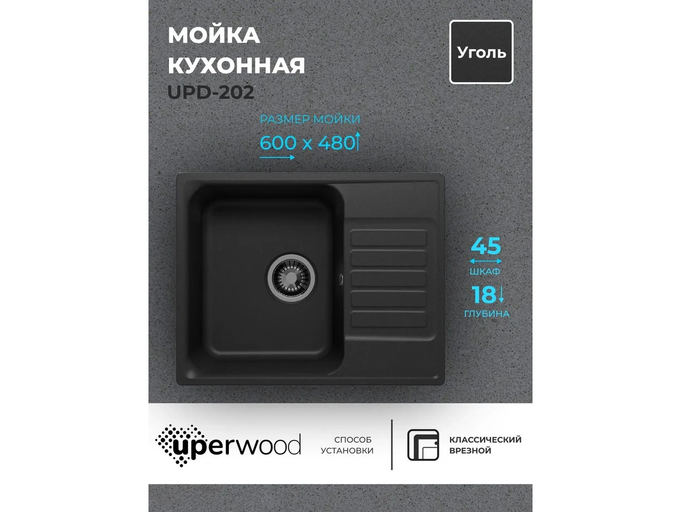 - Кухонная мойка Uperwood UPD-202 уголь