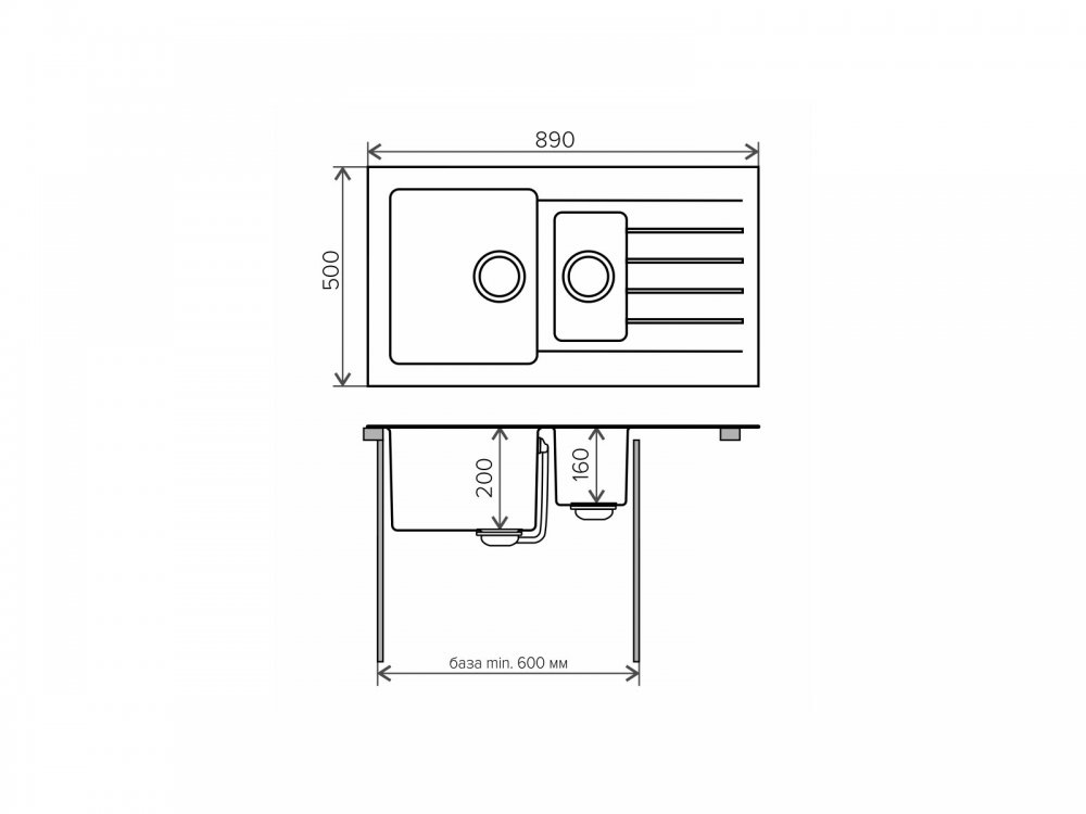 Длина мойки, мм: 890