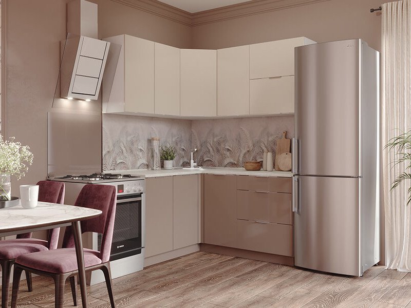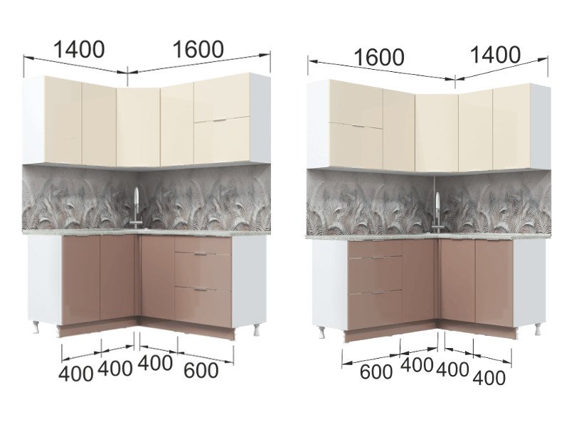 - Фасад: МДФ + пленка ПВХ (шкафы настенные - "Ваниль глянец", шкаф-столы кухонные - "Кофе с молоком глянец"