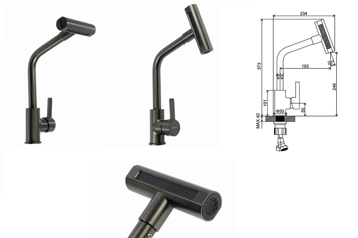 Поворотный смеситель для кухни с 4 режимами аэратора станет практичным приобретением для вашей кухни. Высокий излив имеет возможность поворота на 360°.