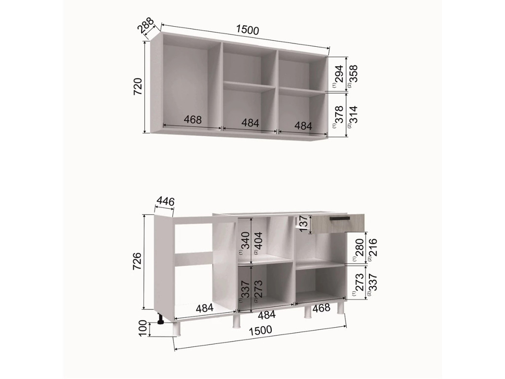- Кухня Аликанте 1500 МДФ Белый снег без столешницы