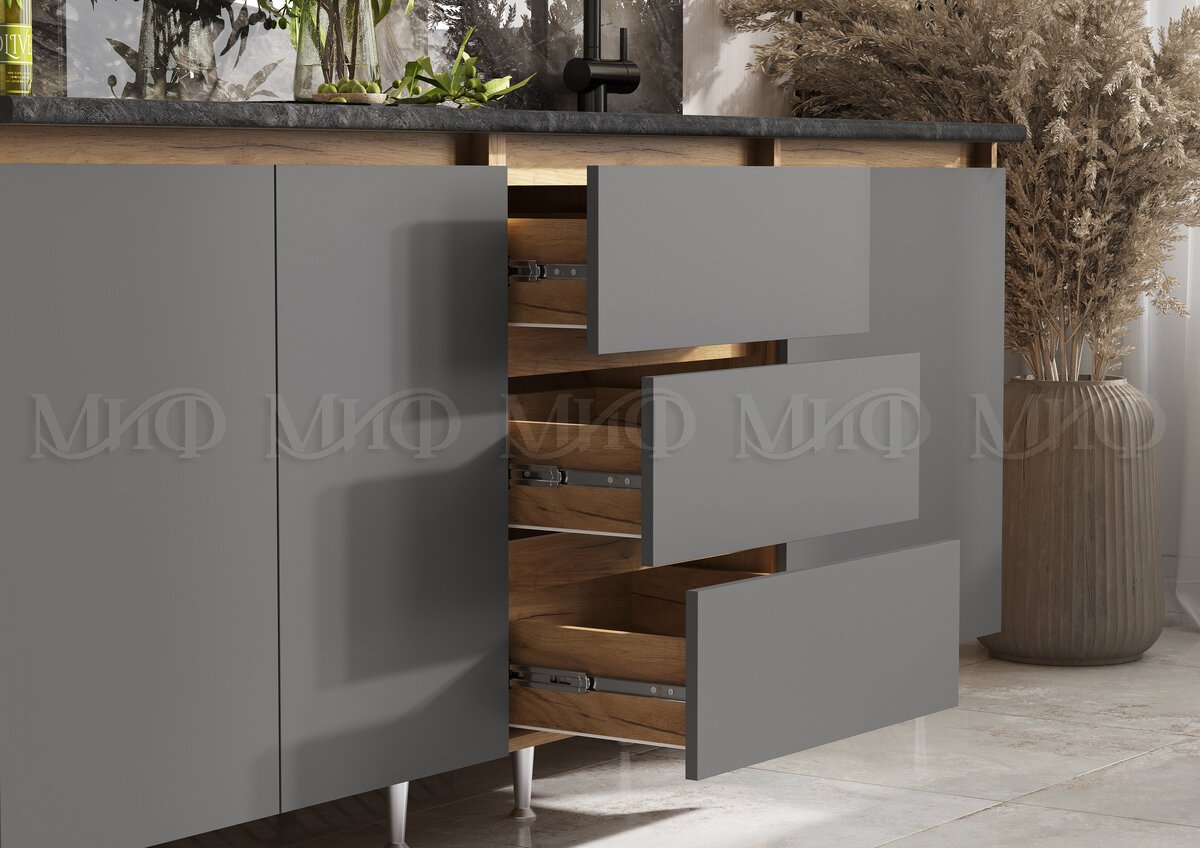 - Кухня Челси 2000 мм Компановка №2 Графит, Дуб Крафт (Кастилло)