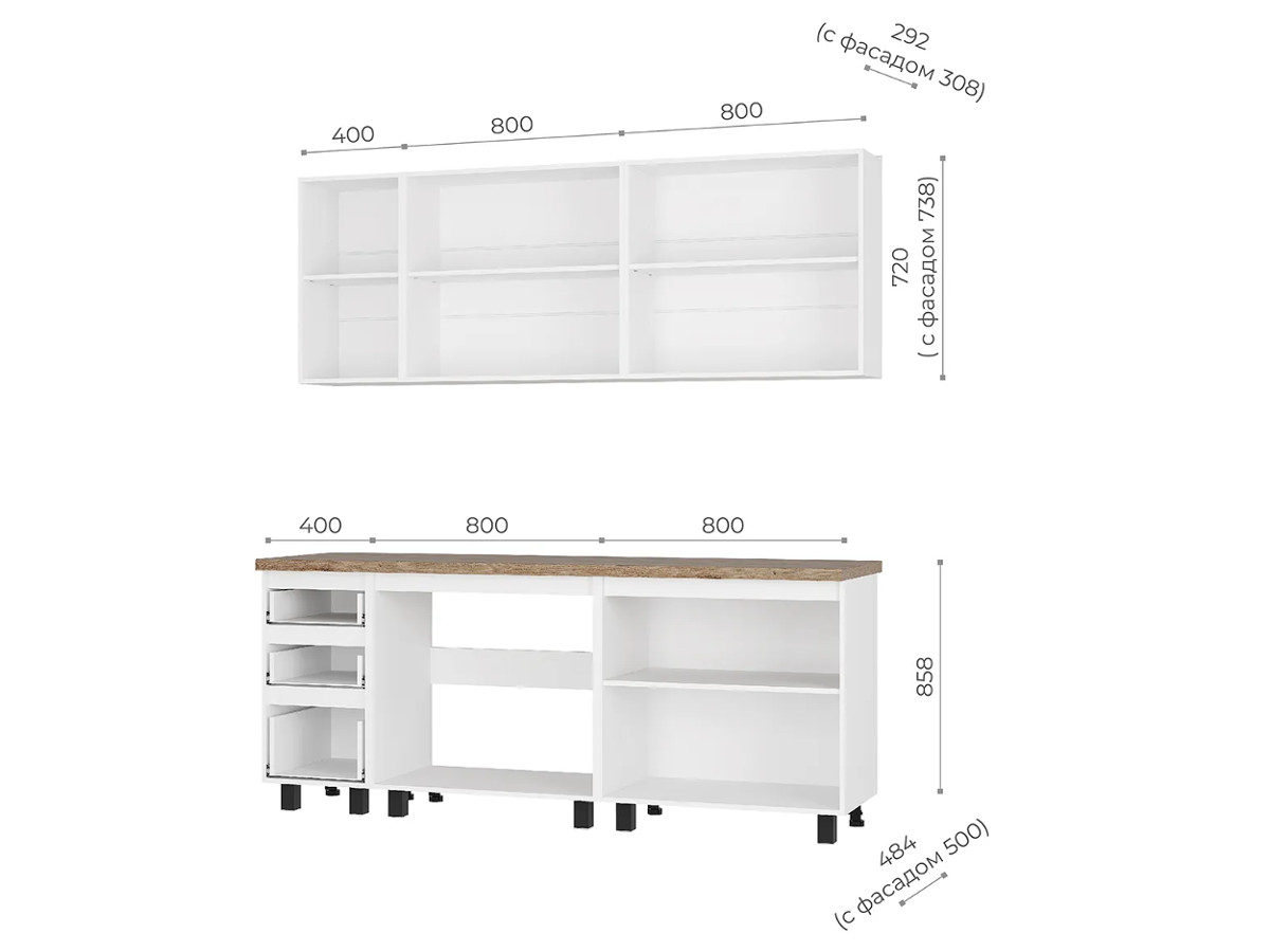 Размеры низ: ширина - 2000 мм, высота - 858 мм, глубина - 595 мм.