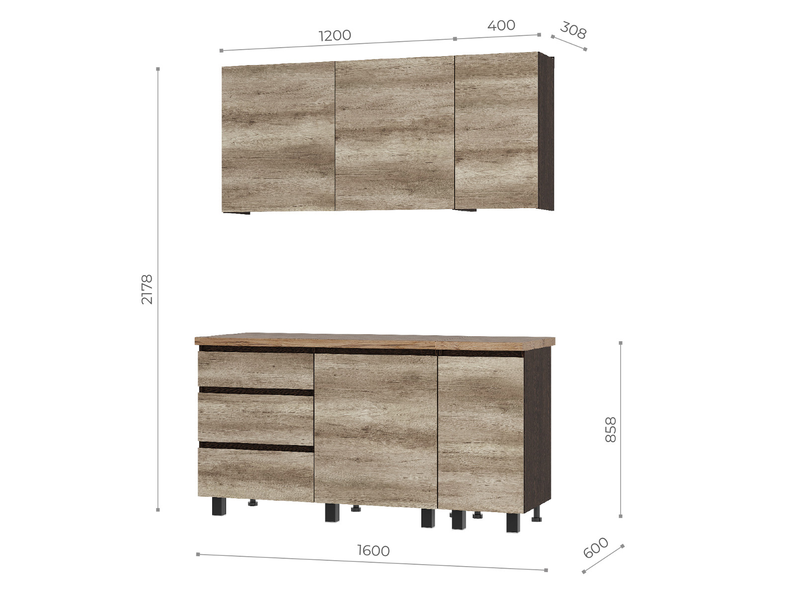 - Столешница "Дуб кера" 38 мм в комплекте (1200/400 мм).