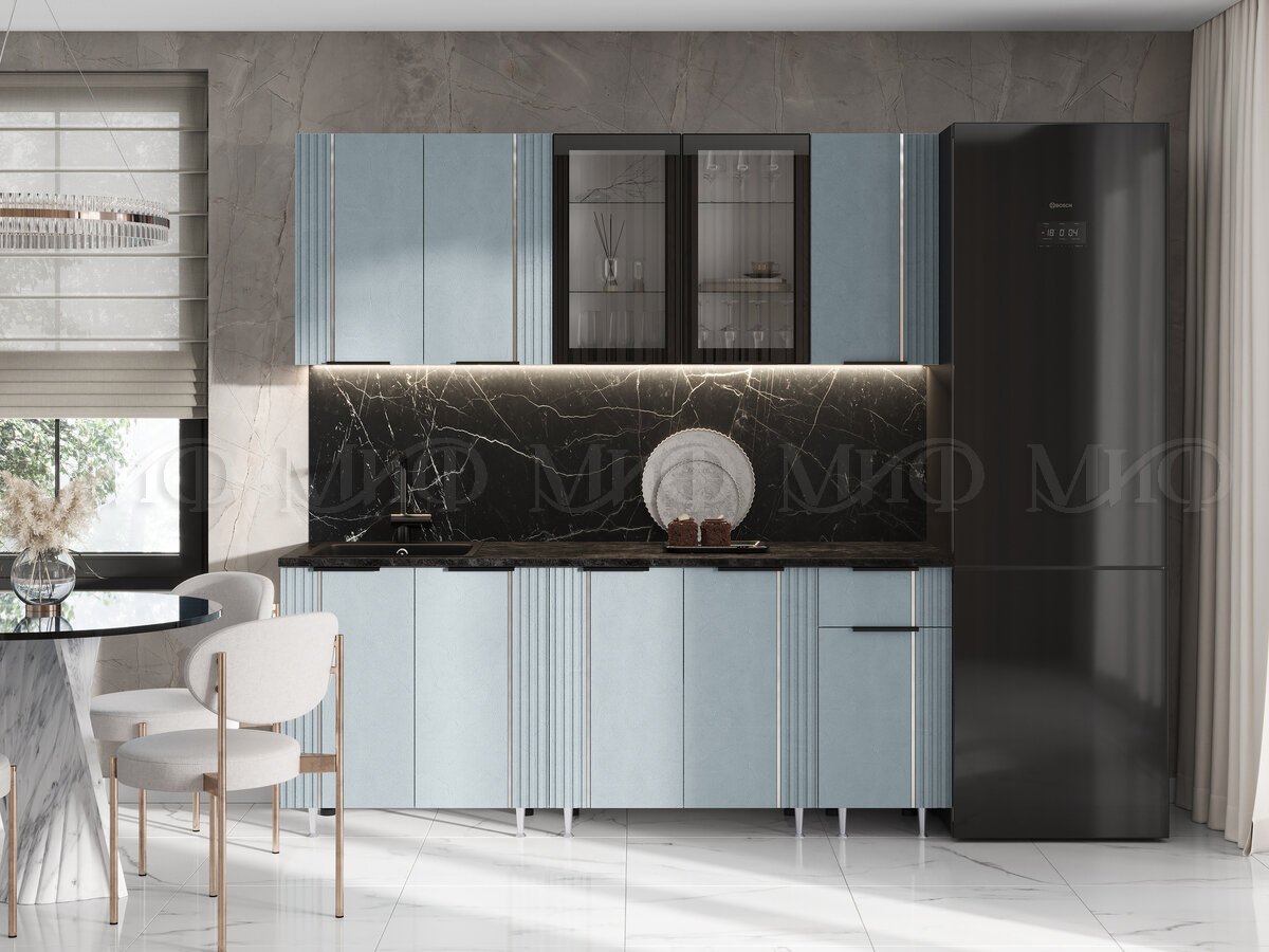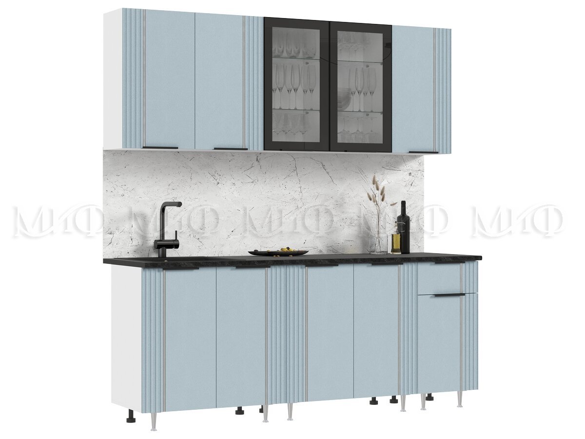 - Кухня Виктория 2000 мм Пластер Скай/Белый (Кастилло темный)