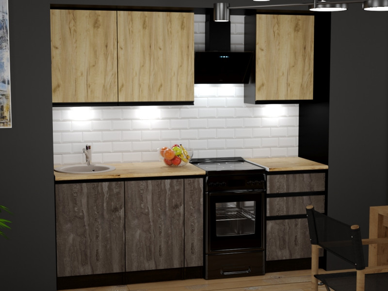 Мойка, смеситель, стеновая панель и посудосушитель в комплект гарнитура не входят.