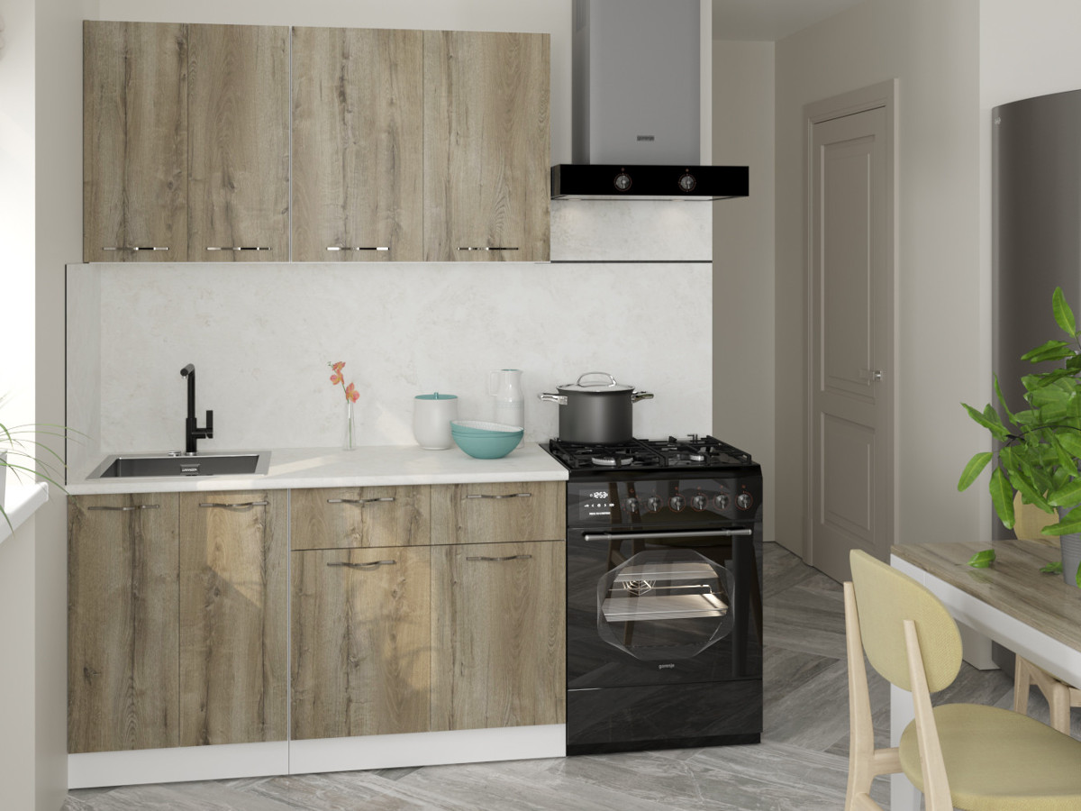 Мойка, смеситель, стеновая панель и посудосушитель в комплект гарнитура не входят.